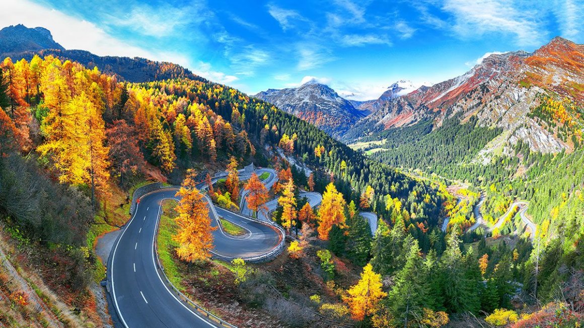 Der Malojapass (Malojapasshöhe 1815 m) ist ein beeindruckender Alpenpass im südlichen Engadin, der das Oberengadin mit dem Bergell verbindet. Er gilt als einer der ungewöhnlichsten Alpenpässe überhaupt, weil er kaum eine klassische Passauffahrt von der Engadiner Seite hat – die Landschaft ist dort fast eben –, während er auf der Bergeller Seite spektakulär steil abfällt.
